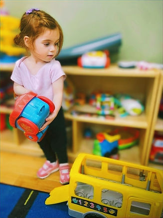 Our toddler program includes a balance of child-initiated and teacher-directed activities. We provide our toddlers with a variety of hands-on experiences and play which keep our toddlers actively engaged and continuously learning more about themselves and the world around them. Through circle times and free play, our toddlers begin to understand and follow the classroom routine, develop a desire for independence and understanding for compassion.